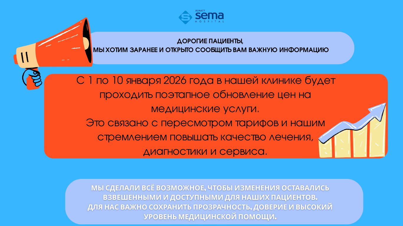Егер тексерілуді немесе қабылдауды жоспарлап отырсаңыз, нақты бағаны call-center операторларынан нақтылауыңызды сұраймыз — сізге қуана көмектесеміз.